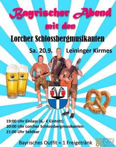 20:00 Bayrischer Abend mit den Lorcher Schlossbergmusikanten
