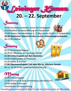 Ich wünsche allen Gästen schöne Festtage und bedanke mich bei dem Veranstalter -FSV Leiningen-Norath- und allen Helfern, dass auch in diesem Jahr wieder unsere Kirmes stattfindet.